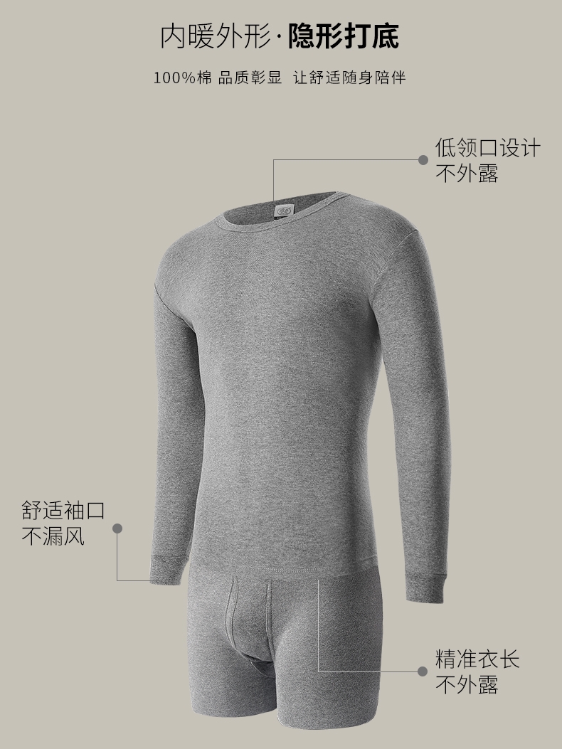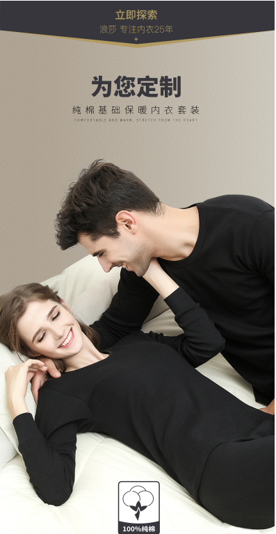 【省心自营】浪莎男女士纯棉毛衫青年全棉打底秋裤薄款秋衣裤套装