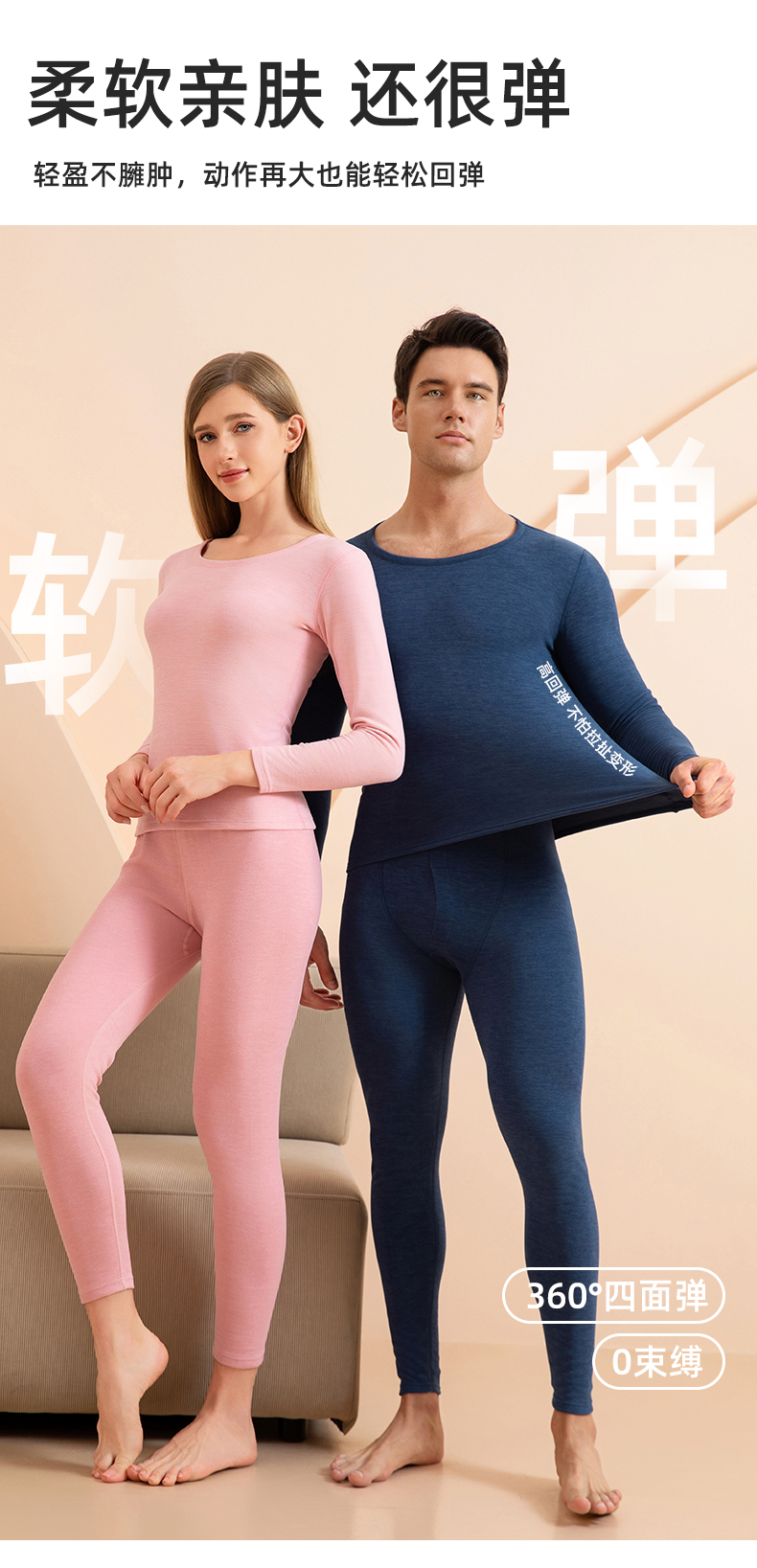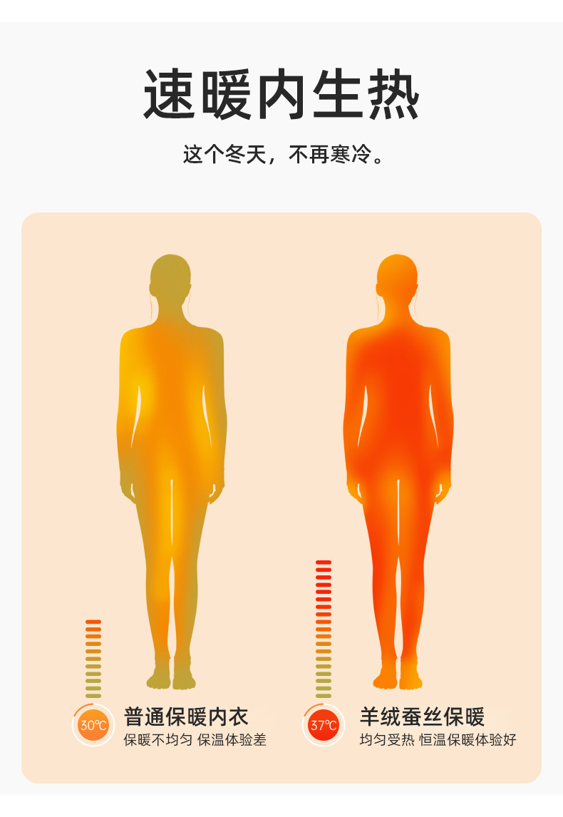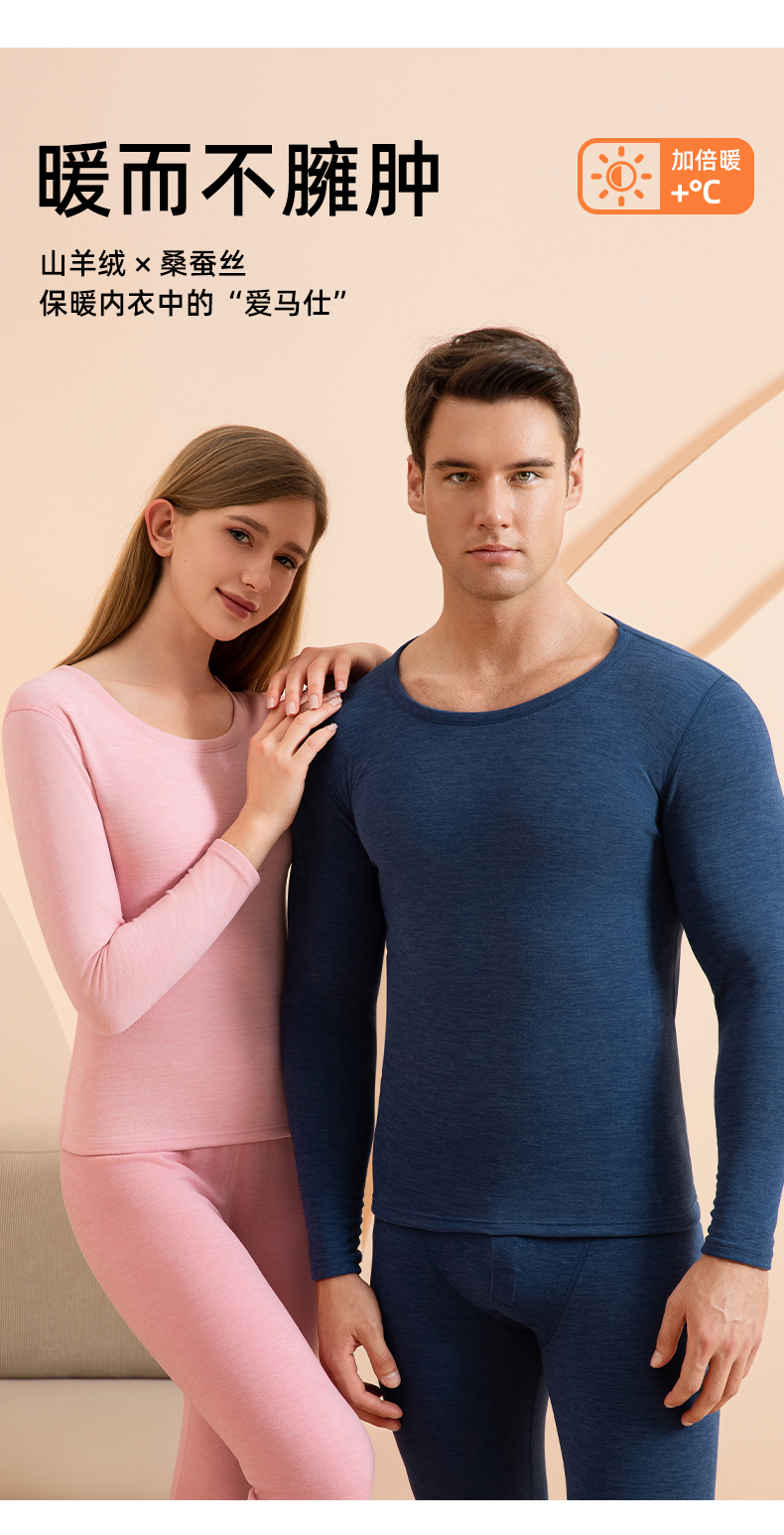 【省心自营】浪莎情侣羊绒蚕丝保暖内衣套装男女士绒德发热秋衣秋裤