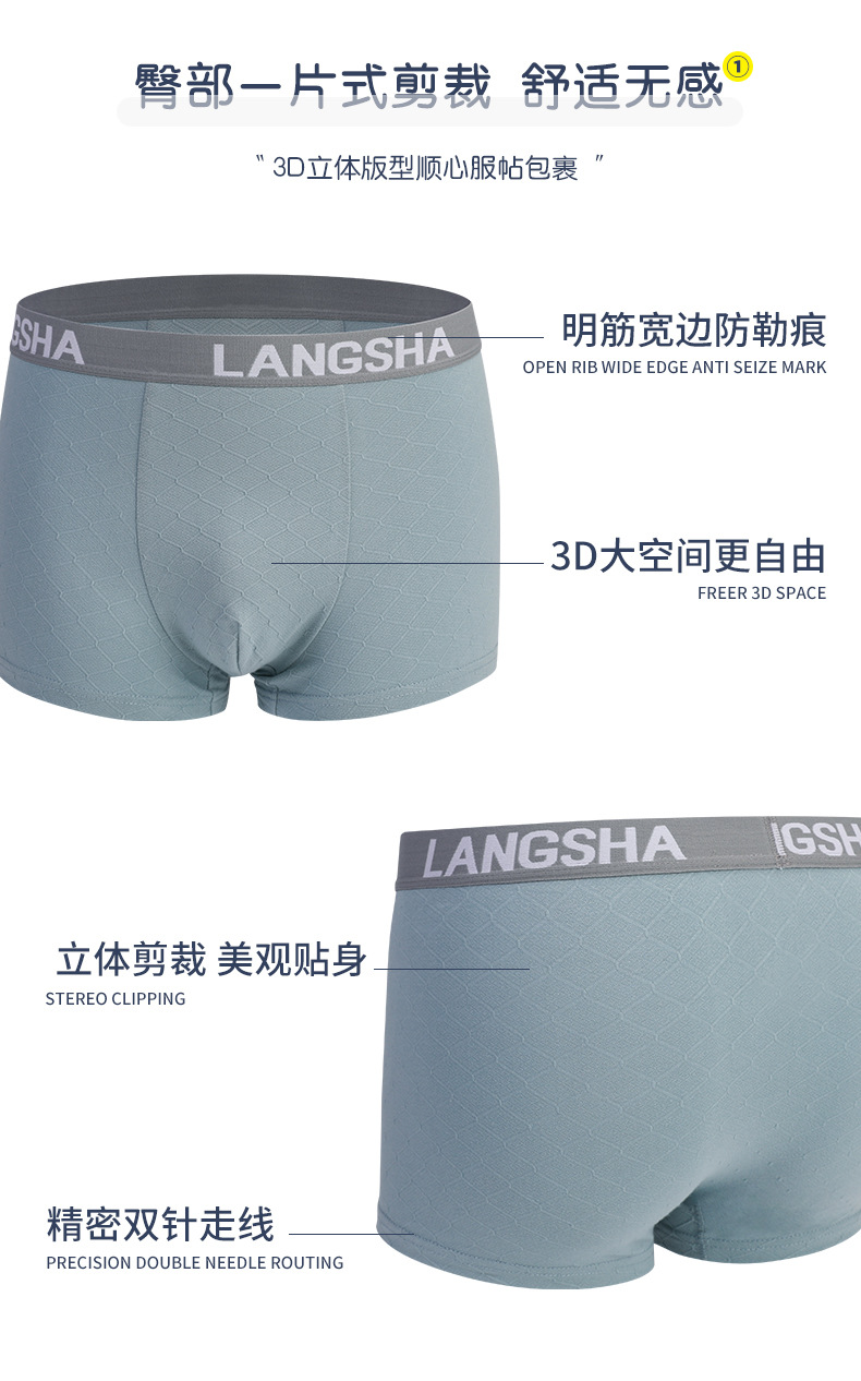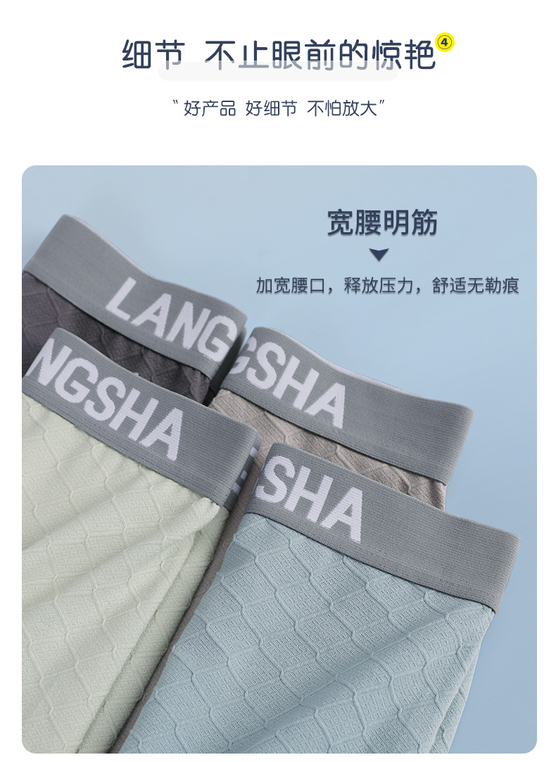 浪莎男士内裤纯棉夏季薄款男生四角裤运动透气男式青少年平角短裤