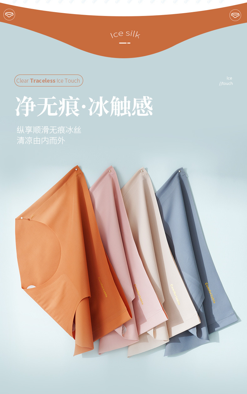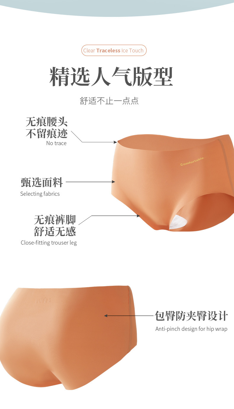 浪莎无痕内裤女抑菌提臀中腰纯棉裆女士一片冰丝性感透气薄款短裤